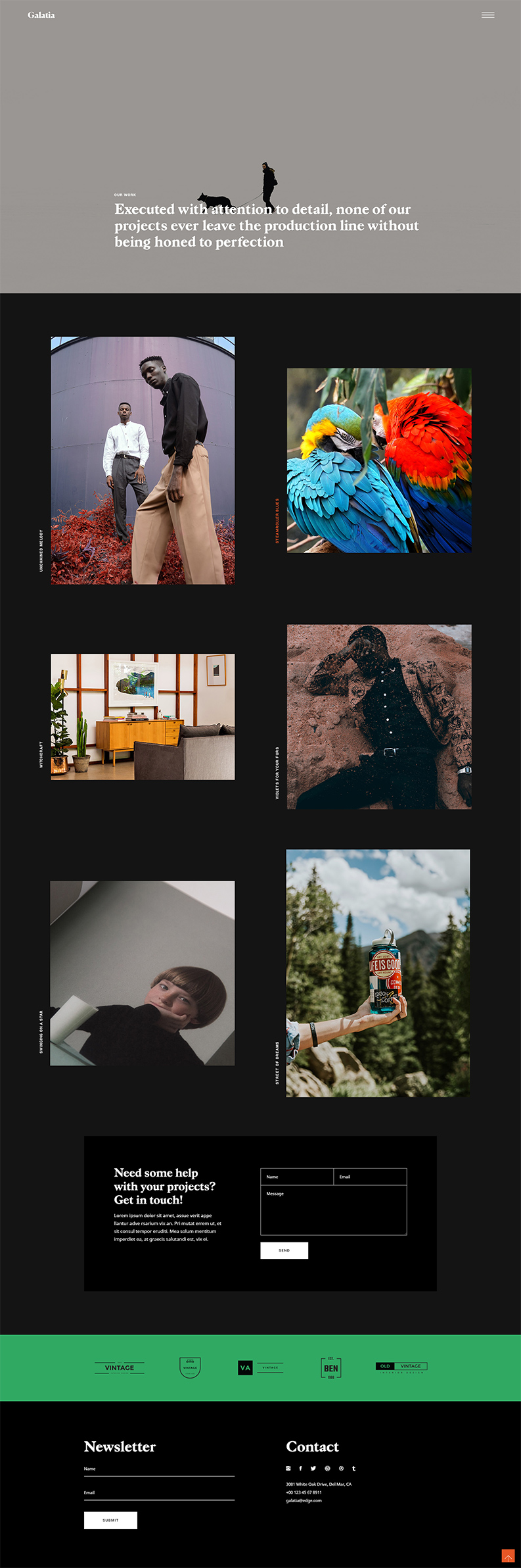 Galatia combines contemporary, minimalistic look with carefully distributed touches of green, purple and orange, inspired by the overall mood from the works of Meleko Mokgosi.